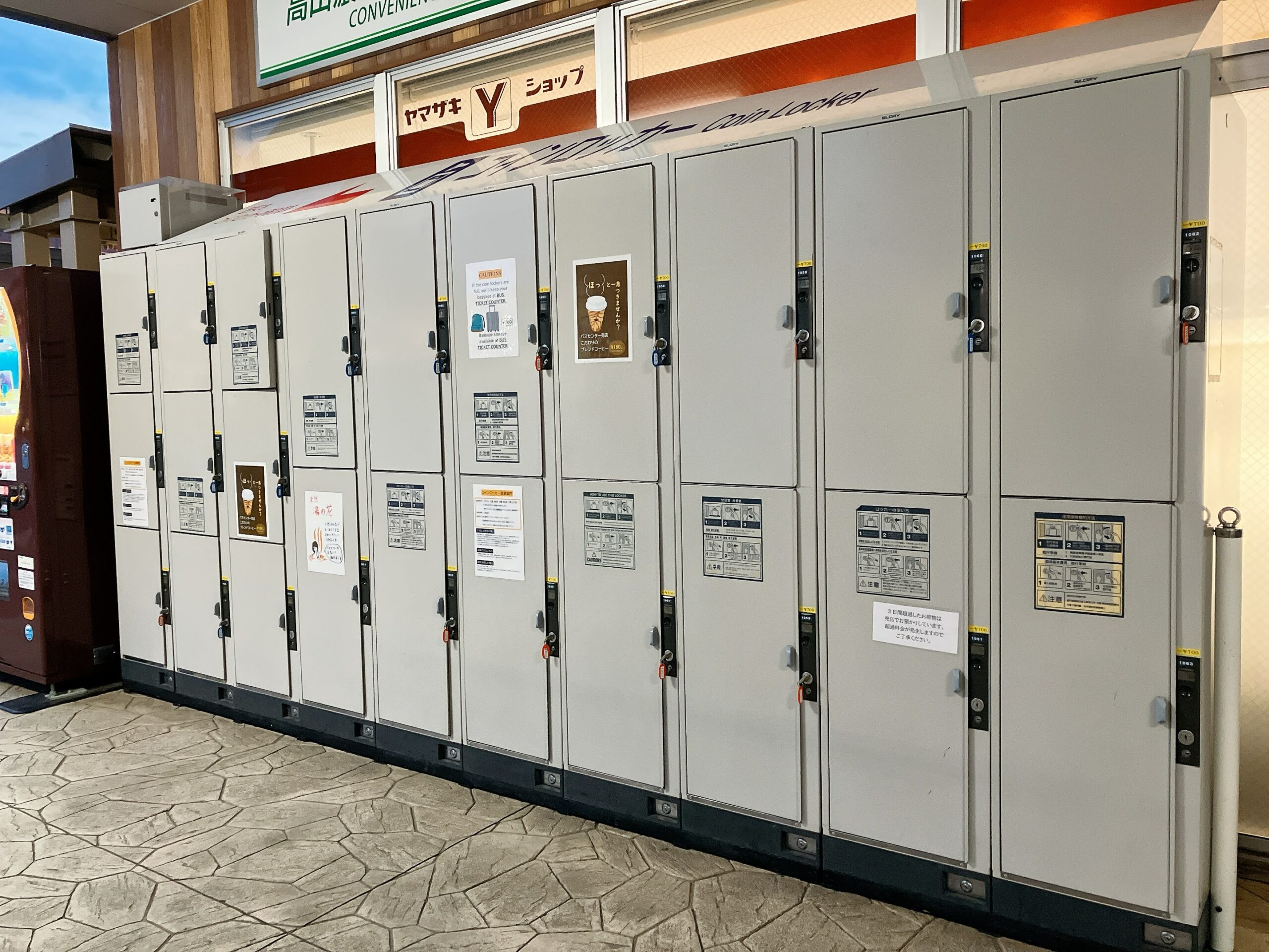 다양한 크기의 코인락커가 세 곳에 설치되어있습니다. 수트케이스도 보관할 수 있어 편리합니다.