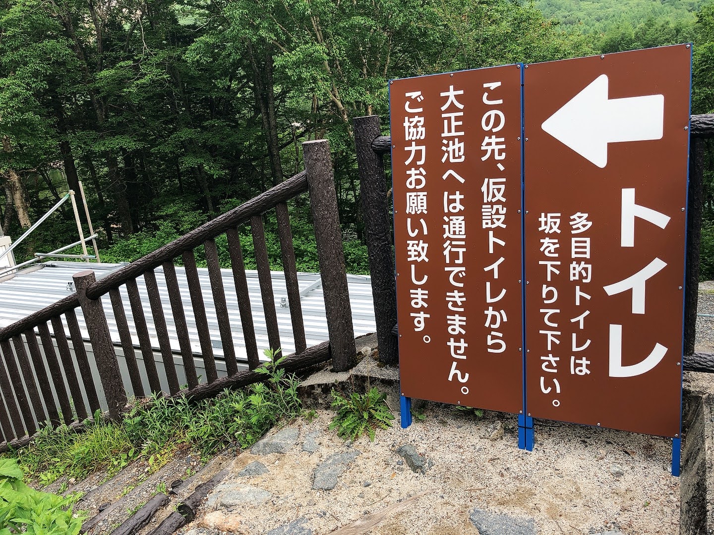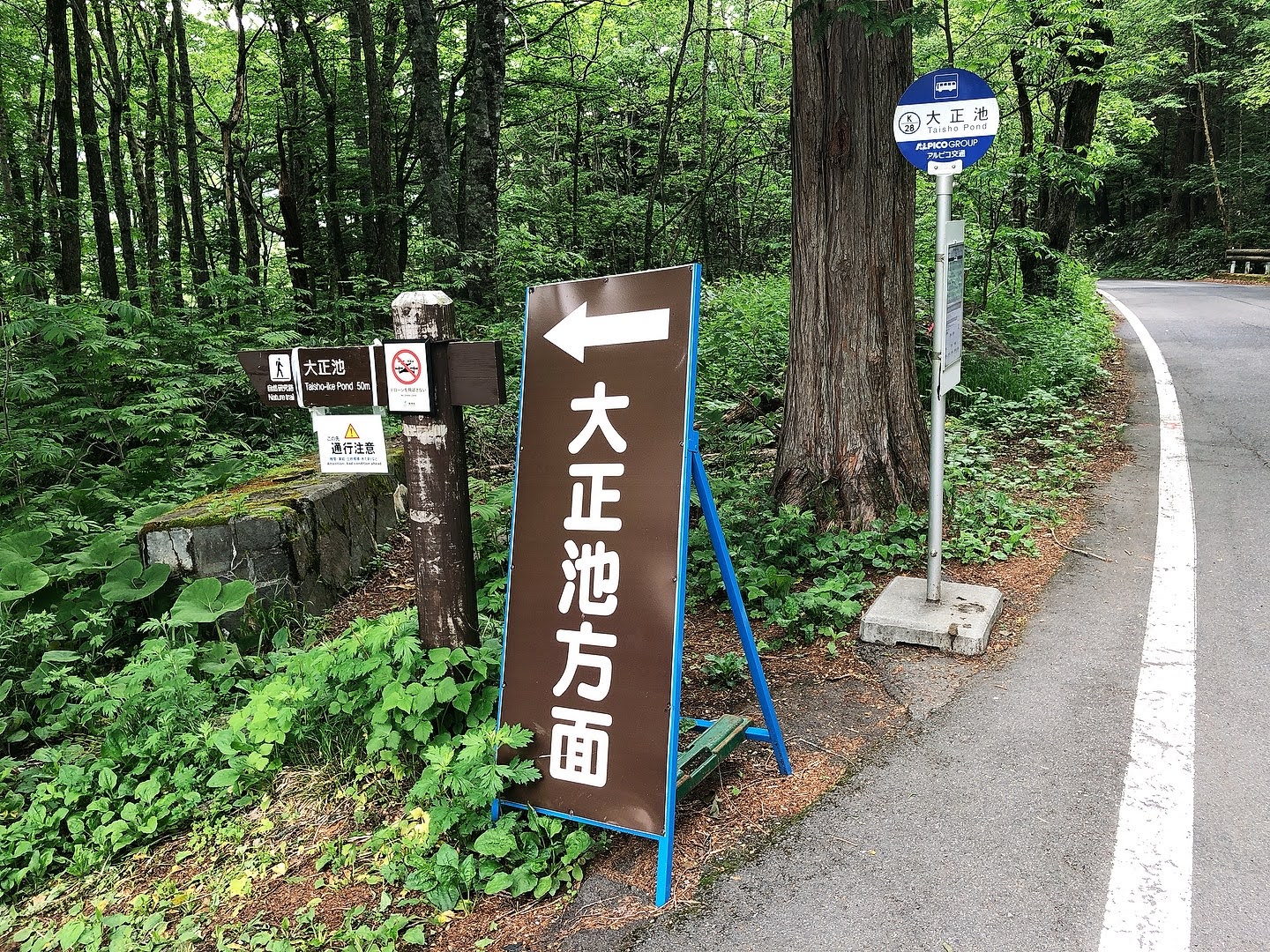 I took the bus departing Matsumoto Bus Terminal at 5:30 a.m., and arrived “Taisho Pond” bus stop at 6:56 a.m. There were public toilets, kiosks, vending machines and coin lockers nearby. However, these facilities would not be available for a while ahead, so please stop by if you need.